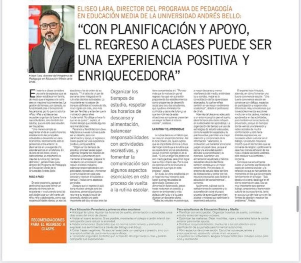 “Una manera simple es segmentar el día en cuatro horarios, estableciendo las principales actividades a desarrollar en esos momentos”, señala Eliseo Lara, director del Programa de Pedagogía en Educación Media de la Universidad Andrés Bello.