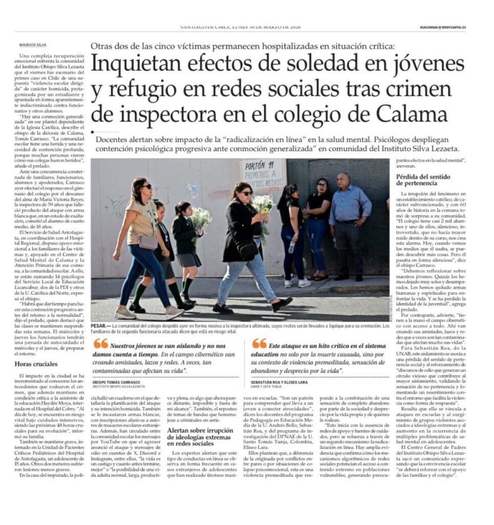 Inquietan efectos de soledad en jóvenes y refugio en redes sociales tras crimen de inspectora en el colegio de Calama, Chile.